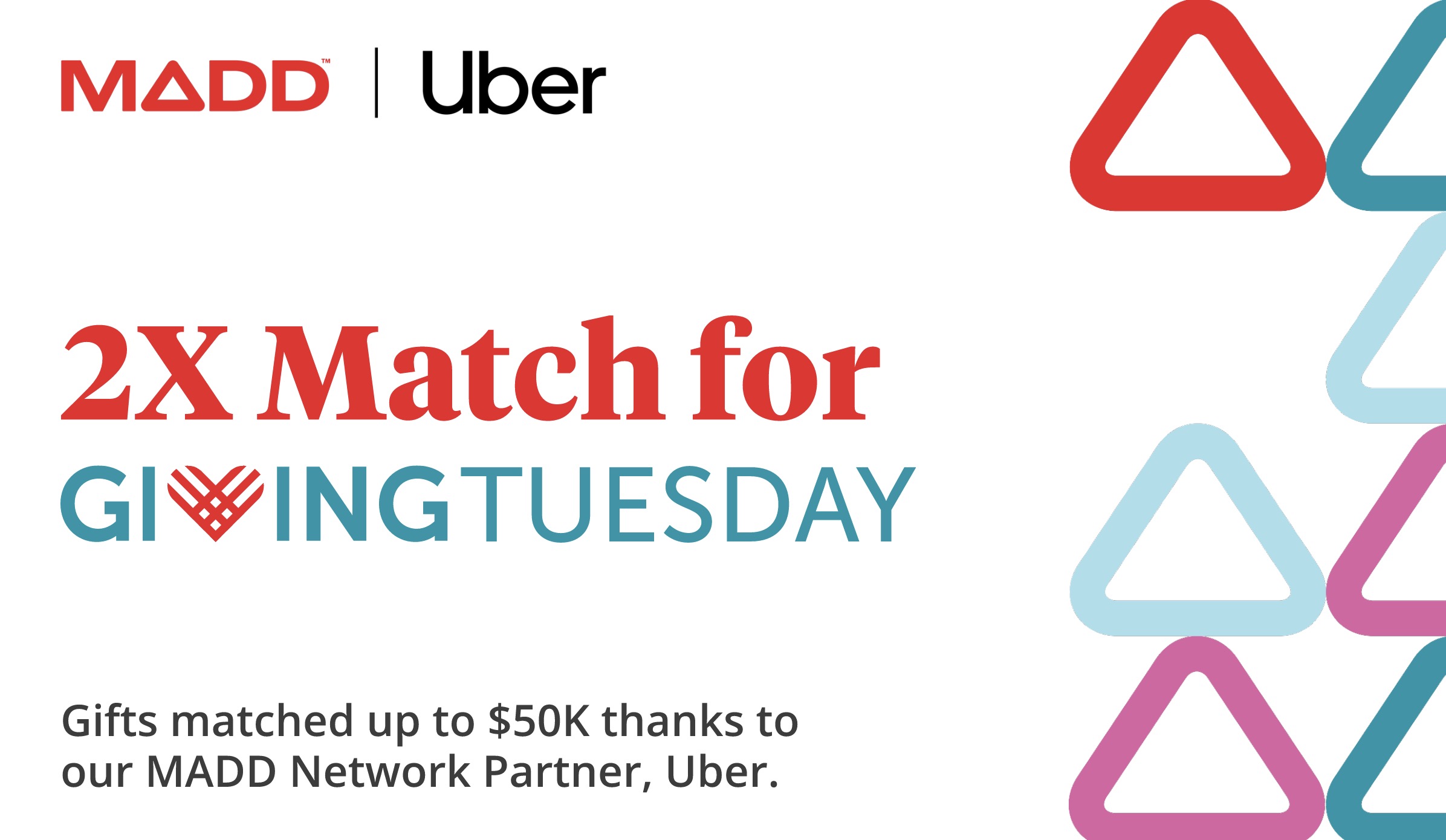 By joining MADD for Giving Tuesday, your gift unlocks our power to make twice the impact and drive even more change. Thank you for banding together with other dedicated MADD community members to seize this once-a-year opportunity to heal, help, and save more lives in the busy months ahead. Donate now to help MADD achieve our Giving Tuesday goal and ensure a safer future for all.